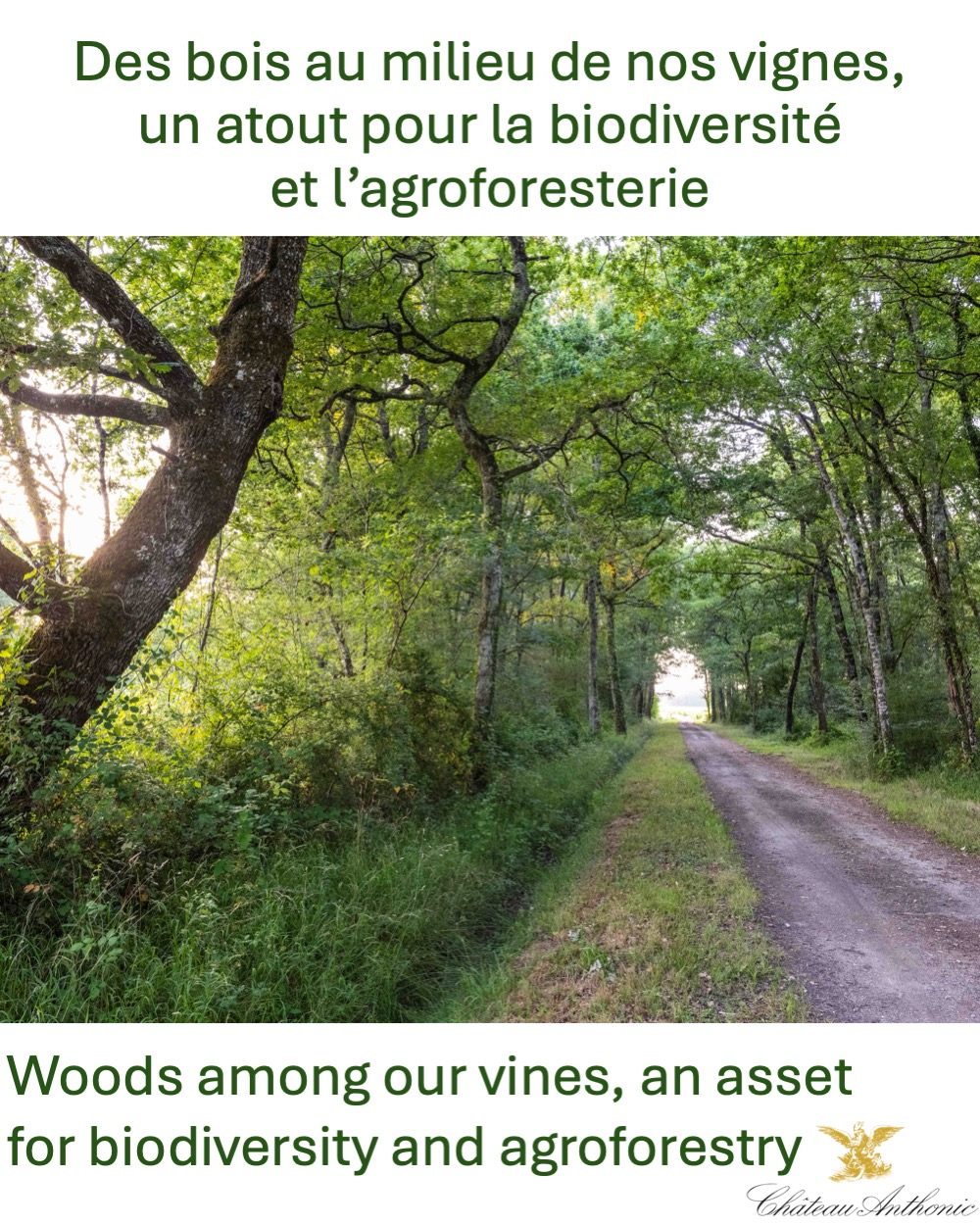 Die Präsenz dieses Waldes im Herzen unseres Weinbergs wirkt somit als Hebel für die Effizienz der agroforstwirtschaftlichen Gestaltung unseres Weinbergs.