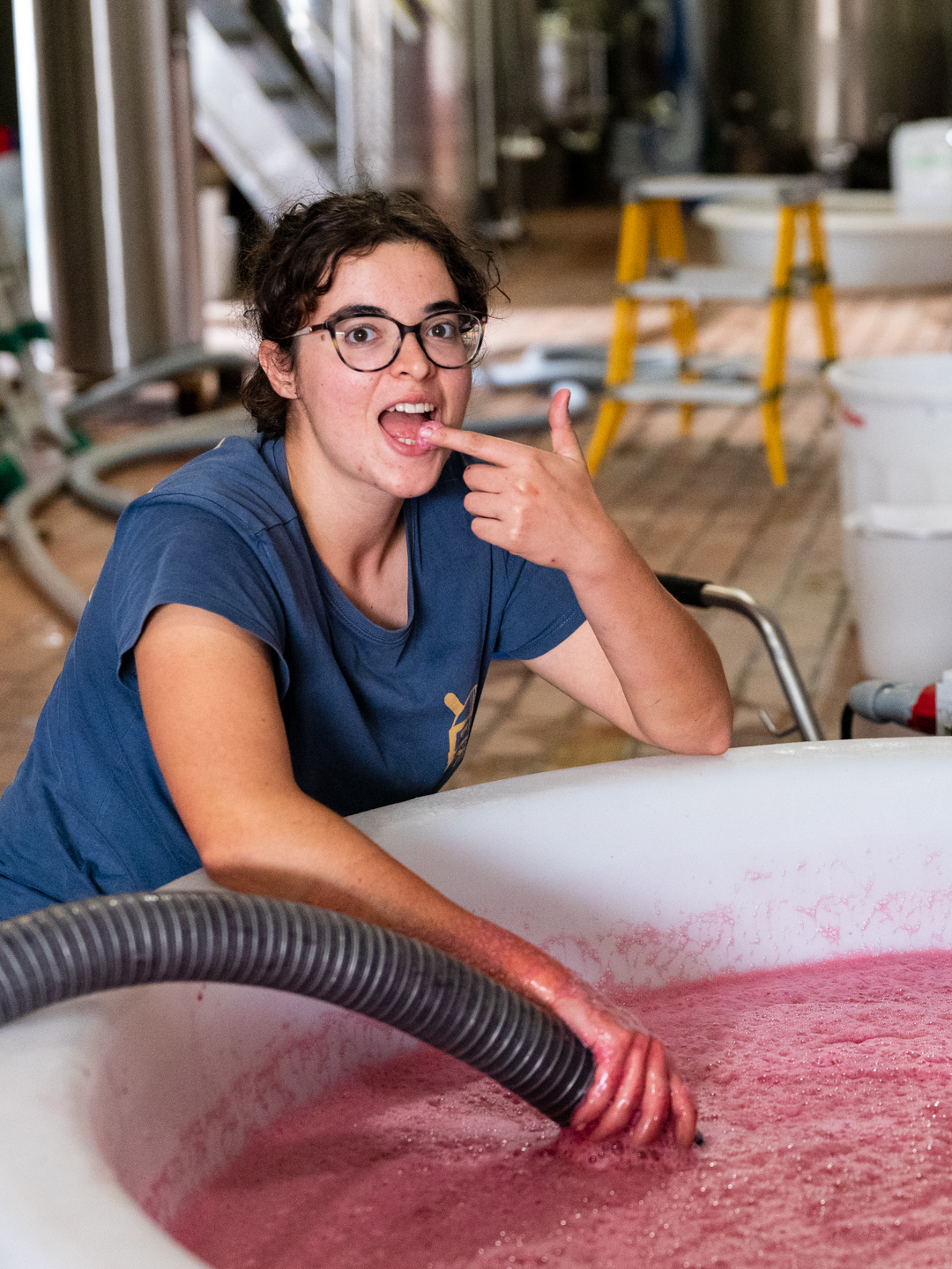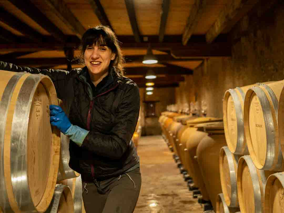 Nachdem sie die Hefe vom Boden der Fässer und Amphoren entfernt und diese gereinigt haben, füllen sie sie erneut mit unseren Weinen des Jahrgangs 2024.