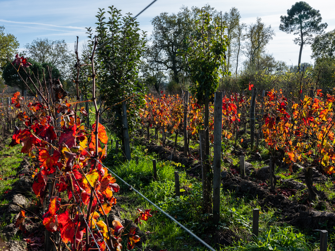 Außerdem haben wir uns seit 2017 für die Agroforstwirtschaft entschieden, d. h. wir gestalten unsere neuen Rebpflanzungen systematisch so, dass in der Mitte und am Rand der Parzellen Bäume gepflanzt werden.