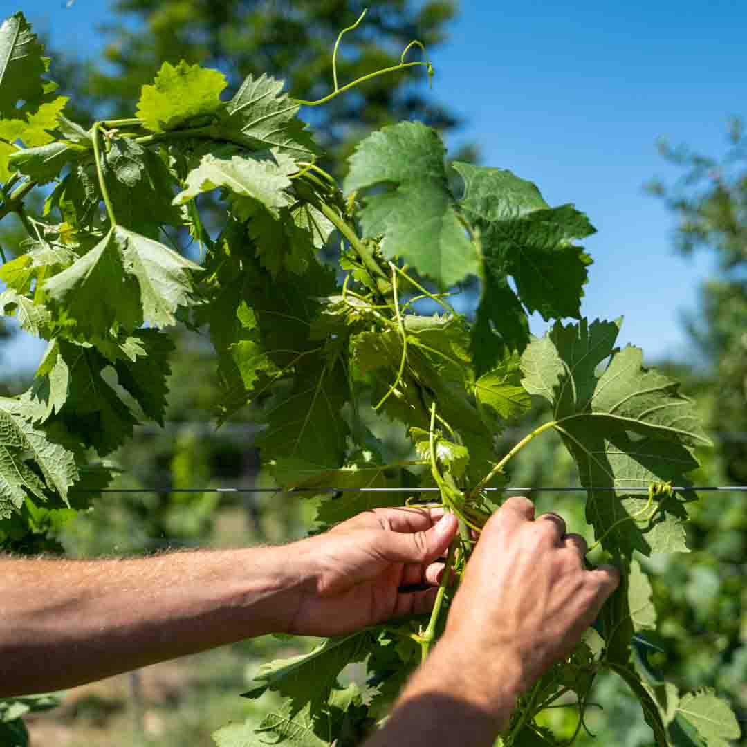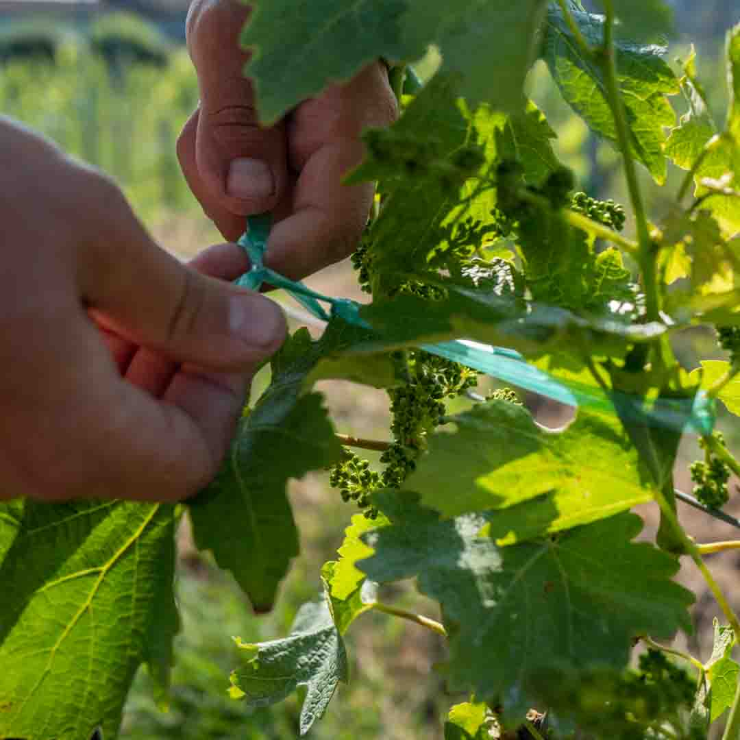 Wenn die Reben wachsen, müssen sie hochgezogen werden, damit die Traktoren durchkommen und die Beeren besser reifen können.