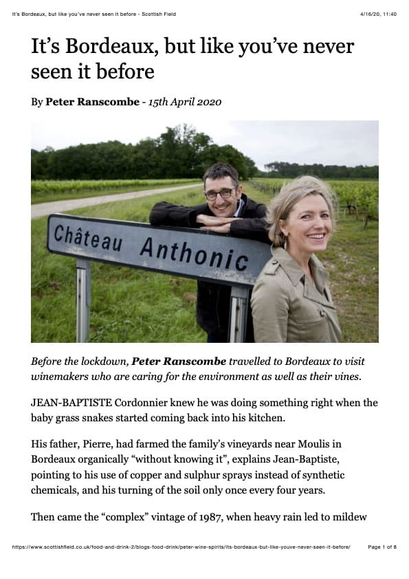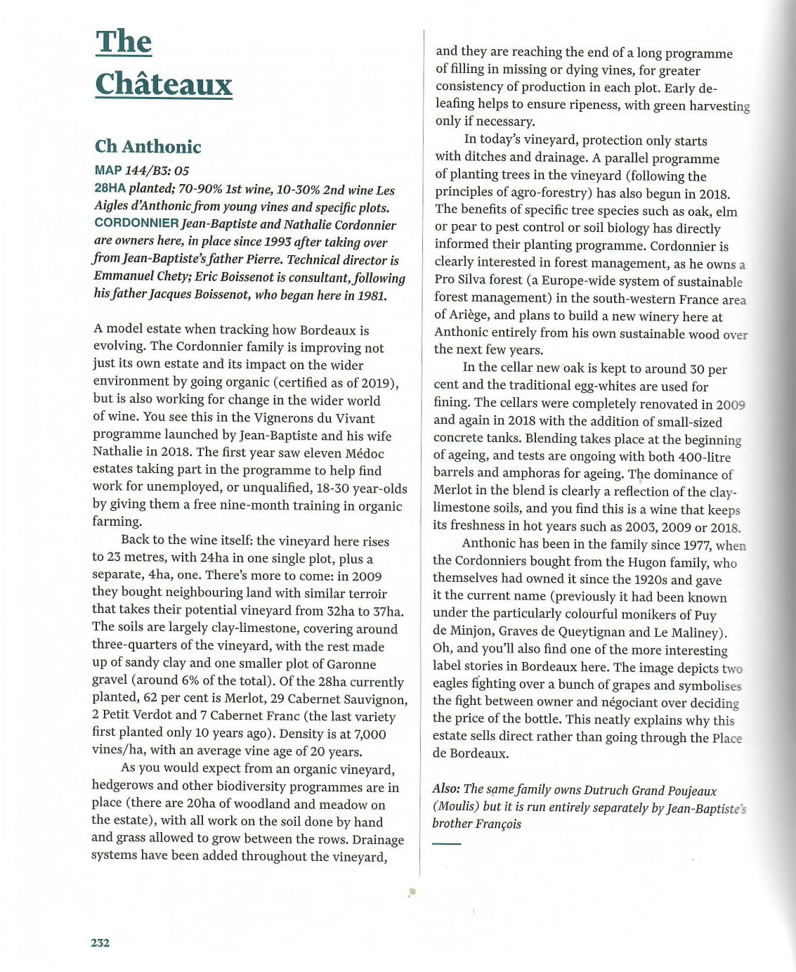 Unsere Bemühungen um die Qualität der Weine des Château Anthonic werden regelmäßig und seit unseren Anfängen von der nationalen und internationalen Presse anerkannt.
