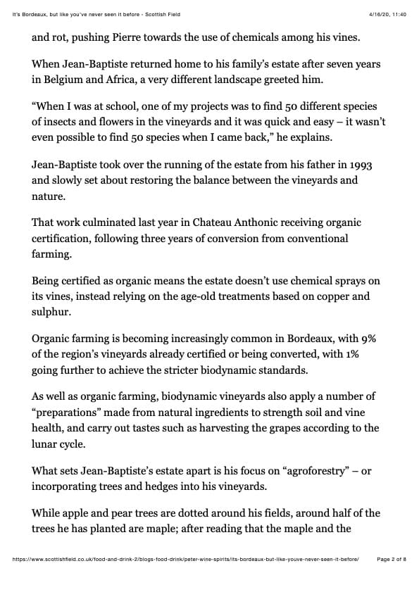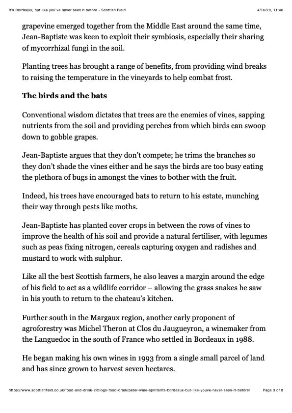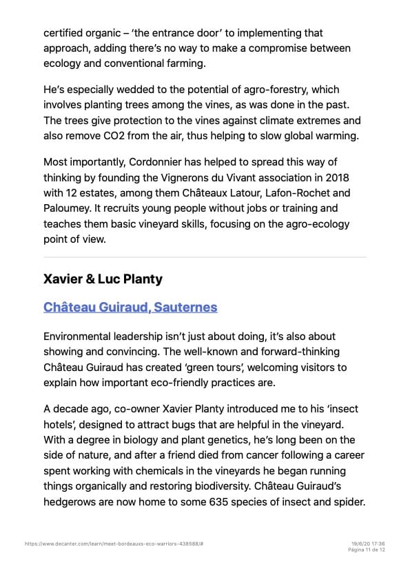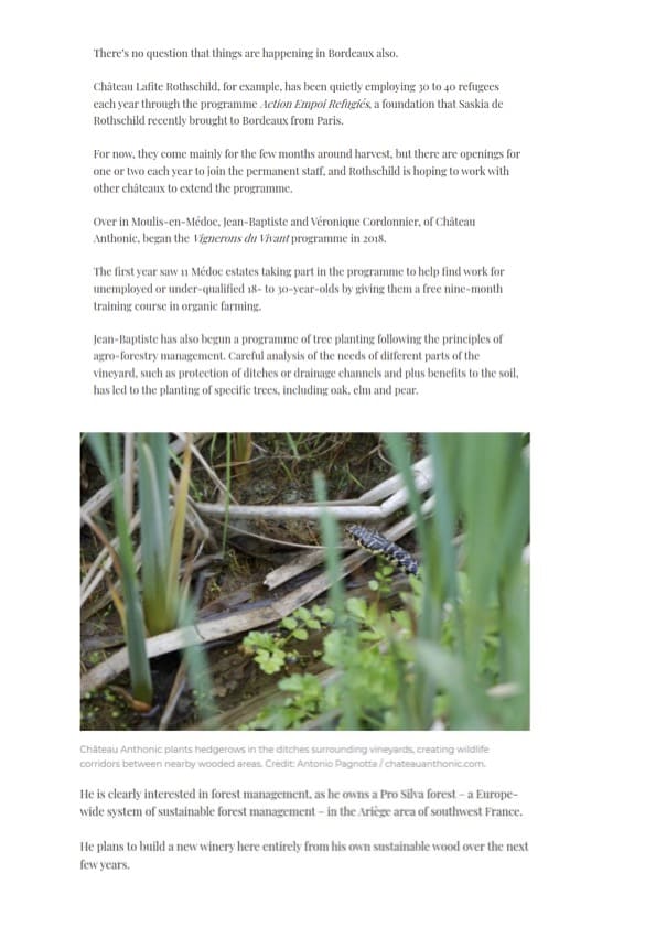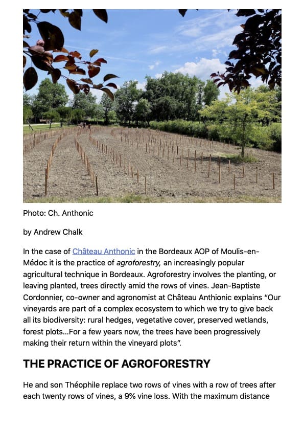 In den letzten Jahren haben uns die ausgereiften Überlegungen und innovativen Maßnahmen, die wir zur Einführung der Agroforstwirtschaft in unseren Weinbergen ergriffen haben, den Besuch zahlreicher Journalisten eingebracht, die in uns die Pioniere auf diesem Gebiet für das Médoc sehen.